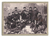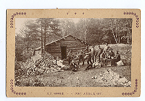 Dazzling boudoir-style cabinet card showing a rambunctious group of men working in a remote Canadian location…by Cooke, known for documenting the Canadian Pacific Railroad...(more)