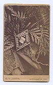 Creative still life CDV featuring a Delta Kappa Epsilon Fraternity pin atop of what appear to be ferns and thick paper or fabric…(more)