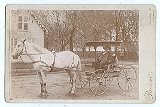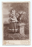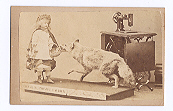 Pair of cabinet cards from Danville, IL. The first shows a young girl with her curious small dog posed on a pedestal ...(more)