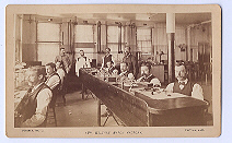 Exciting boudoir cabinet card showing the interior of the American Waltham Watch Factory...(more)