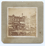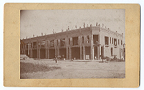 Striking boudoir cabinet card showing the construction of the Jo Ho Clemmer Block in Beatrice, Nebraska…..more)