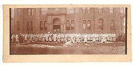 Impressive, odd shaped cabinet card of the Masons of the Masonic Temple in Bay City Michigan..(more)