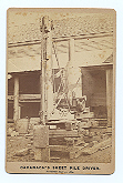 Occupational still life cabinet card showing Cavanagh’s Sheet Pile Driver, which was patented May 27, 1884…(more)