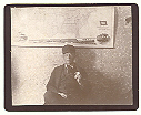 Dynamite small format cabinet card of a railroad man posed in front of a fabulous map showing the Banner Route of the Wabash, Central States…(more)