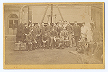 Interesting cabinet card cabinet showing the office staff of the engineers of the A. Ransome and Co. and owner Allen Ransome, April 1881. A. Ransome & Co. was established in Chelsea, London, in 1868. They were an important firm which designed and manufactured woodworking along with timber-handling machinery and iron founders...(more)