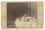Treasured cabinet card of two fuzzy kittens posed in their bed…(more)