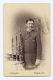 Extraordinary cabinet card showing a handsome musician posed with his three prized clarinets….(more)