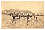 Spectacular Frith’s Series cabinet card showing a gorgeous beach seen with personalized mobile beach houses sitting in the shallow water of the harbor. This of course was photographed by the prolific Francis Frith …(more)