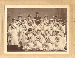 Outstanding large mounted warm toned photograph showing fourteen young women proudly posed holding brooms…(more)